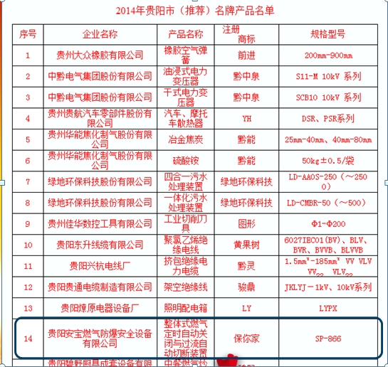 我公司獲取“2014年度貴陽(yáng)市(推薦)名牌產(chǎn)品”
