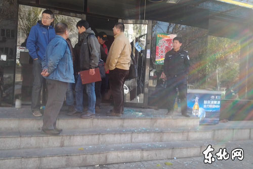 民警和燃?xì)夤竟ぷ魅藛T勘察現(xiàn)場(chǎng)。東北網(wǎng)記者 王忠?guī)r 攝