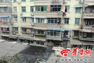 “太害怕了!”一位老先生說,他也是對面樓上的住戶,當時聽見那聲巨響后,嚇得他半天都沒敢出門,后來發(fā)現(xiàn)門口小樹上還掛著半扇窗戶框,才發(fā)現(xiàn)這是被“炸”下來的。在兩棟樓中間還有一排小平房,在高處可以看到,平房房頂上也落著窗戶框和玻璃碴,所幸爆炸沒有對其他住戶及房屋造成影響。