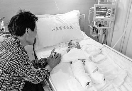 “我趕緊通知孩子他爸,他干活的地方離家不算遠。”他說,臨沂市一家醫(yī)院收下了兩個大人和狗蛋的姐姐,可是狗蛋因傷勢過重,當?shù)貨]法治療,只能將孩子轉到濟南。